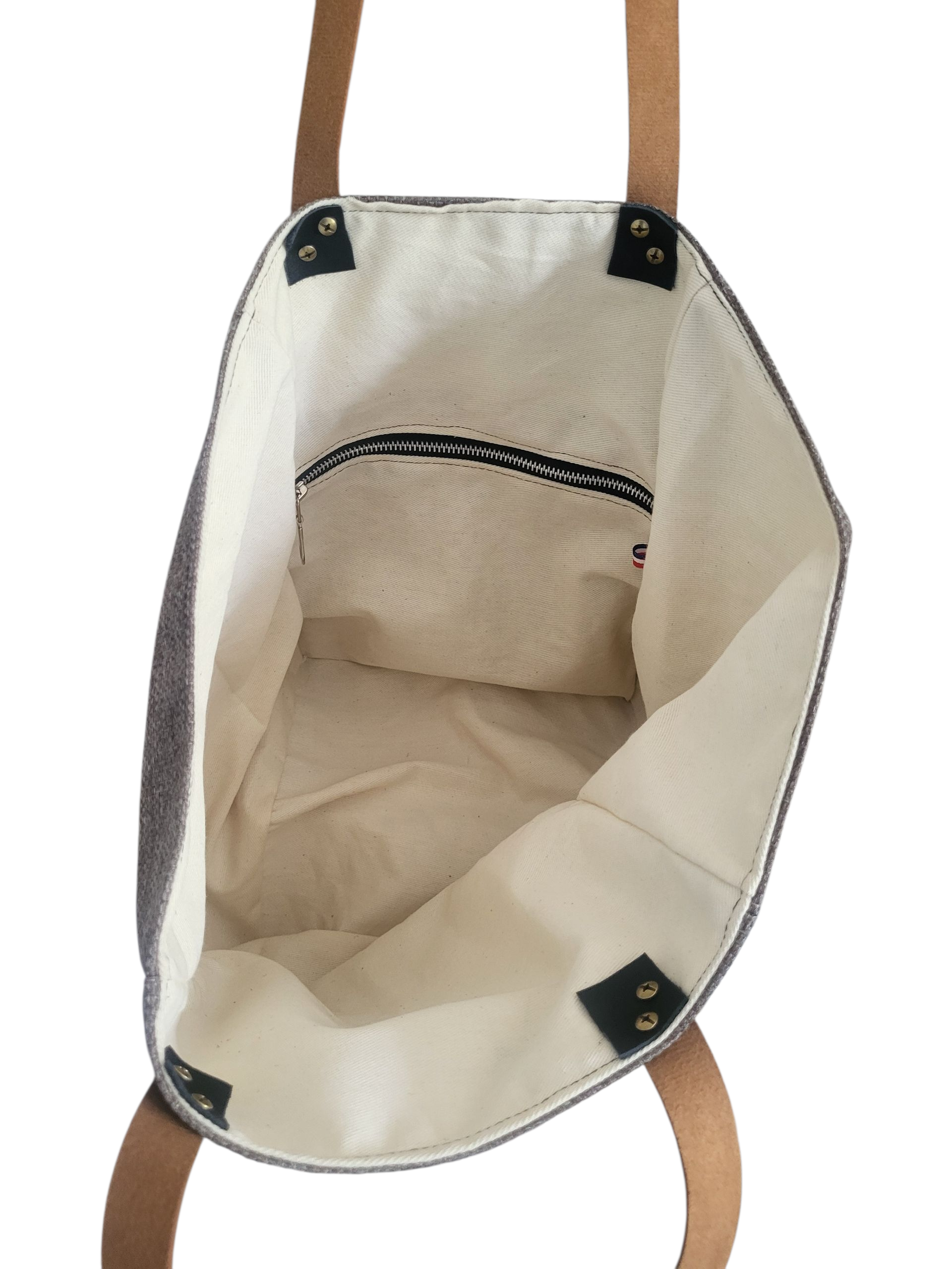Doublé en toile écrue épaisse avec une poche intérieur zippée.