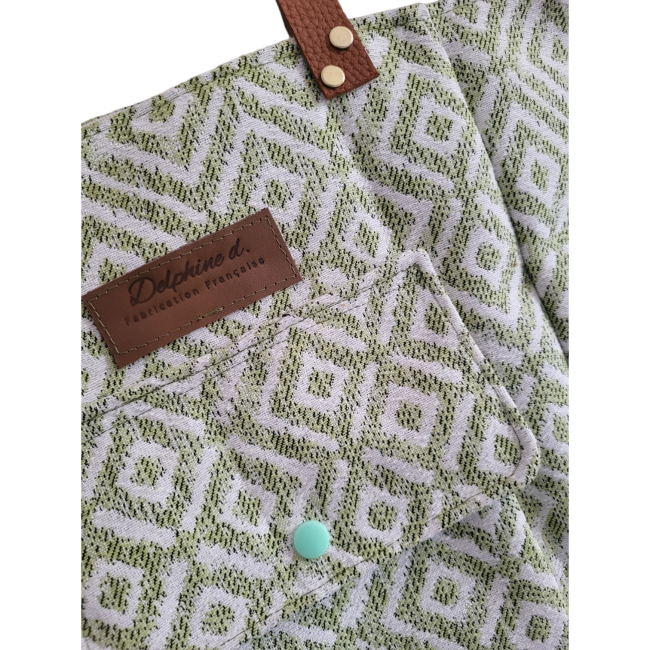 SAC CABAS jacquard vert et blanc avec une poche devant.